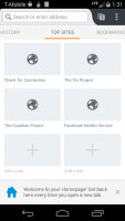 After installing the Orfox application on a smartphone, the user can freely access his favorite sites and use social networks without the restrictions of the provider. Even if the Internet address is blocked by a government organization, there will be no obstacles. The browser substitutes the real IP address and redirects traffic through a special encrypted channel. Transmitted or received data cannot be decrypted by the provider, so the security of use is guaranteed.Cons