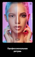 After launching the program, the utility will issue a request for access to the camera of the mobile device. In order to be able to use all the options of the program, you need to give the software this access. After that, you can start working with the program. In the process of shooting a video or photo, you need to position the device in such a way that the person's face is placed in the frame on the screen. The software allows you to use one of the available filters. Thus, you can remove wrinkles, or pimples in just a few seconds. There is an option to add light makeup. And changing the skin color of the face. In addition to filters to transform photos and videos, users can take advantage of various interesting effects. For example, to age a person, or transform his face into one of the popular cartoon characters. After processing the materials, the photo or video can be saved in the memory of your device.Retouch
