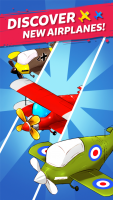 The game is designed as a timekiller, because of this it doesn't go towards any goal or following a clear plot. In it, you need to control the location of aircraft and keep track of profits. At the beginning of the game you can use one biplane with old characteristics, which gives very little income. But after accumulating a certain amount of money, you can buy new airplanes. To improve, you need to combine several aircraft with similar levels. The location used as a garage is limited and can run out. If this space is not enough, you'll have to recycle old aircraft to use the new ones. The game is made in colorful 2D graphics and simple and clear gameplay. In the settings you can choose sound, audio tracks, vibration, power saving mode and language.Features