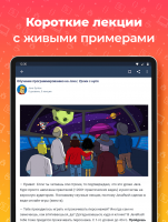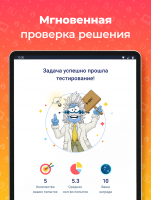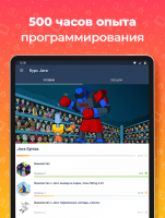 In the program there is a huge number of tasks of different levels of difficulty. In most you need to redo already made code or make your own personal code. It is possible to do applied small projects by making games from the beginning. Already made code can be sent for checking and instantly see the result. The program has chat support with students and course creators.Features
