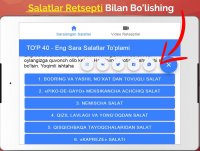 Salatlar is a program for Android phones to understand the methods of creating national salads of Uzbekistan and others. The program provides detailed recipes of food from different seasonal food.
