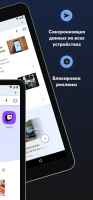 Similar to Avast Browser, this program gives the ability to apply the built-in VPN service. It gives the ability to bypass the prohibition of Internet resources and security of personal information when functioning on the Internet. Clients can control the permissions that have been granted to sites, and do not open access to the camera, microphone, and even the location of the phone. There is an option to auto ban pop-up ads. This gives an opportunity to save the internet.Testing