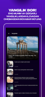 On the main page of the application, you can find sections with numerous categories. It is possible to select TV channels of different genres: entertainment, news and music, as well as to adjust the quality of video when viewing. It is important to keep in mind that an internet connection is required to use the multifunctional utility. Popular Uzbek movies and TV series with descriptions are available in the application. The user can add them to the list of favorites for easy access.Radio and Music