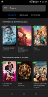 The main menu of the program contains the most famous videos. They are categorized into certain types. The list includes famous movies and TV series for a day and seven days, as well as upcoming ones, with the highest rating and the like. With a swipe there is an opportunity to go to pages that are devoted only to movies and TV series. There is the ability to find them by tags, selecting war movies, drama, family movies, comedy, fantasy and the like. Moreover, there is the ability to find videos by year of release and title. For this purpose, there is a window that is located at the top of the display. Customers can mark their favorite movies by transferring them to the Favorites tab. This requires the creation of an account. All movies, TV series or animation tapes are provided with a photo and description. Clicking on the name or picture opens the display tab. There is the ability to select the resolution and source from which the material will be shown. The program has a video player. There is a rewind, stop, playback and so on. Selected materials are saved in a separate folder on the internal storage of the phone.Features