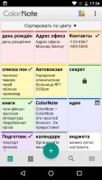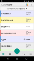 ColorNote is a notepad program for Android cell phones. With its help, you can make notes and memos, as well as lists of important things to do. There is also an option to add reminders of major events.
