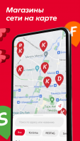 The utility also has a built-in map. On it, the user can study the location of all supermarkets belonging to the network korzinka uz. Built-in navigator will help to lay the shortest route to one of the discounters. There is also a built-in search. In it you can find the nearest store in the city you need.Features