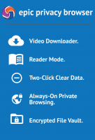 The utility is developed on the basis of the Chromium browser. Thanks to the browser's built-in features, the application allows you to search for information by typing in the address bar - URL input. There are several built-in search engines: Yandex, Epic, Yahoo. Also the application allows you to open several tabs at the same time. Download files when using the utility is also provided by the developers. Also Epic Browser has a function of encrypted storage for downloaded files, which can be created by the user at will.Security