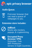 Epic Browser has a function of customizing personal permission lists for each Internet portal. The user can also save login and password for quick access to the resource. It is also possible to view all trackers blocked by the application. The utility has a function and audio playback: the user can listen to the text of the site, as well as customize the list of alternate reading. There is also a reading mode and a video downloader. However, there is no possibility to download videos from YouTube, as it is prohibited by Google's policy.Features