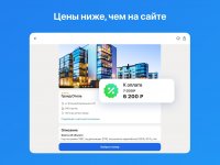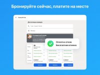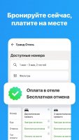To apply the program, you need to make an account or log in with an account in one of the social networks. Then you need to select a settlement, travel time and number of guests. Then the list of available hotels will be displayed. There is the ability to see the location of the hotel on the map, and also apply filters. With their help it is possible to distribute accommodation options by price and rating. The program allows you to select the desired distance to the center of the settlement, type of food, services and comfort.Bookings