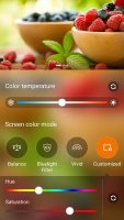 The program gives the opportunity to correct the display of a cell phone in four formats. The first of them works with color balance. It gives you the opportunity to change the color temperature scale with the help of a slider, moving it from cool colors to hot and vice versa. The next format is the blue color. It is designed to block the backlighting of the display and gives the opportunity to reduce eye fatigue. The choice of this filter is recommended in the situation of prolonged use of the phone or reading online books on its display. Bright mode gives you the opportunity to make the shades more juicy and vivid. It is most suitable for gamers. The fourth and extreme mode gives the opportunity to personalize the display. It gives the customer the opportunity to change the color temperature, hue and saturation depending on his personal desires.Nuances