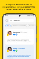It is easy to make a request: just click on the green icon in the center of the display. In the description you need to write what kind of work needs to be done. In addition, there is an opportunity to attach pictures, address, time and balance. There is the ability to ask for services only from proven professionals. All requests go through the moderators with the attachment of the type of service. Then the right masters can respond to the request.Features