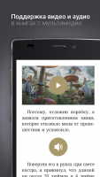 The utility is able to sort books, not only purchased in the app, but also in the memory of the phone device. Able to rank works by category, author or genre. The search engine allows you to find books in the cloud and the internet by downloading them. Lots of modes and tools. There is access to a quick menu (hotkeys). You can change the brightness of the screen, font, orientation of devices. A bookmark with copied text is created.Listening