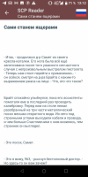 You need to create an account in the program, but it is not necessary. This will give you the opportunity to leave comments under posts and talk in chats. In the account settings there is the ability to select the theme of design, font of posts and adjust the language of the interface. There are also links to groups of SCP Foundation fans in VKontakte VKontakte or Facebookfeatures