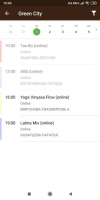 When opening the application on the main page, users are offered information about scheduled classes with the start and end times. Choosing a program, club visitors have the opportunity to get acquainted with the trainer's data, description of training, number of available places. After installing the application to change the settings, it is necessary to register with a phone number. Registered users get access to news and achievements, also to notifications.Features of Green city