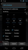 In order to access each option of the program, you need to have root privileges. After starting the above program, you need to adjust the backup copy settings. There is the ability to save boot files, cache, list of numbers, conversation, system settings and other types of information. Moreover, customers can make a plan to create a backup for some time. The program allows you to save backup copies in archive format and send them to your personal computer. There is also the ability to download information independently or on a schedule.Restore