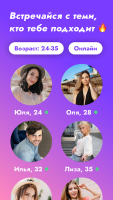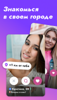 User profiles appear on the main screen in close-up. It displays a photo and brief information specified in the profile. The user is offered two choices: click like or dislike. You can also simply swipe left or right. There is a system of notification of new likes and messages. There is a search by criteria.Features