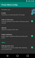 The application allows you to decipher the functional menu of the gadget, which appears on the screen after a long press of the power button. Also Power Menu as additional functions allows you to add a couple of controls. Also in the process of rebooting, with the help of the utility you can create a screenshot. In one click you can set system restore without digging into backups or downloading additional applications.Settings
