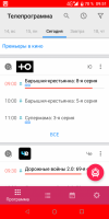 The main function of the mobile program is to provide access to the broadcasting schedule of Russian TV channels. In order to view the TV program, you need to select the TV channel of interest from the list, which was previously compiled by the user. The catalog of TV channels is available on the main page of the utility. After clicking on the desired channel, the user will see the broadcast schedule for today. To view the broadcast schedule for other days, you need to swipe to the right or left. The user can see the description of the program from the broadcasting grid. To do this, you need to click on it. After that the user will see information about the movie, show or series. The programs can be added to the list of favorites. To do this, you need to click on the heart icon. The user can also share a link to a TV program by sending it to their friends in social networks, including Classmates and VKontakteadditional features