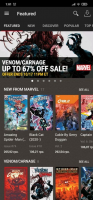 Within the app, users can find electronic versions of comic books from Marvel. Marvel Comics has a handy catalog where comics are divided into different categories such as new, anticipated, popular, and free. Users can also easily find lists of comic book authors, series sequence, and story descriptions. The catalog is organized alphabetically for easy searching. Like the ComicRack app, Marvel Comics offers a search function by comic book title or author name. The app also provides the ability to download comics to cache for later reading. Downloaded works will be available in the "My Books" section, and users can also send selected works to the "Archive". Within the app, users can also create lists of comics for future purchase or create a "wish list". The description of each comic includes a plot synopsis, rating, number of pages, age restrictions, language, and a list of authors. Previews are available. It is worth noting that all works, except those in the Free section, are paid.Reading