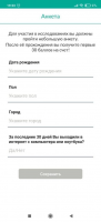 To be able to start using the application, it is required to go through the registration procedure, doing it by phone number, filling out a questionnaire. Also, it is important to specify the date of birth, gender, city of residence. After the registration procedure, another 30 points are automatically received. Of course, there is a unique opportunity to get another 120 points by answering additional questions in the questionnaire.Features