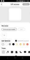 The program differs in that it allows you to import custom sets of icons from the phone gallery. It is also possible to create your own icon variants. To realize this idea, it is enough to choose a photo that you like, applying a filter to it, applying a picture. You can choose and you are interested in the color of the image, its glow, changing the size of the icon and so on.Features of the app