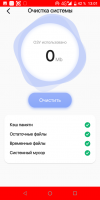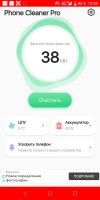 When starting the application, the main page displays the general statistics of the occupied space (internal memory). After clicking the "Clear" link, the program scans the file system and automatically starts the removal of unnecessary content. The list of affected files is not displayed. After this procedure is completed, the initial statistics is displayed again, and the size of free space becomes larger. A detailed study of the program revealed that no files are deleted at this stage. Similar behavior is found when running system optimization. The utility displays RAM consumption statistics, then simulates the unloading of applications and the display of new statistics. In fact, all the tools presented, including reducing CPU temperature and extending battery life, do not perform the stated functionality.Nuance