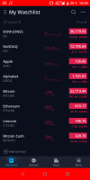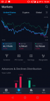 On the main page there is a panel with the main stock quotes, which are updated in real time. To open detailed statistics and the rate chart, just click on the necessary line and a new panel will be activated. Swipe to the left opens the panel, which is responsible for demonstrating the current state of the markets. The division into sections is used - cryptocurrency market, global and American. The main stock exchange indices are displayed below. There are convenient diagrams of companies whose shares are currently falling or rising in price. The next tab contains a news feed of the economy of different countries. The content is available only in English. Russification is not provided. The last tab provides access to the settings menu. You can configure the notification system, adjust the list of tracked items, change the authorization method and a number of other options. You can use account linking to access your personal account Facebook or Googleat launch