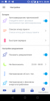 After opening the utility, a person will find the start page. The current battery status and energy consumption can be studied on it. It also displays the approximate time that the gadget can still function without recharging. The user can click on the button located slightly below, which will reduce power consumption and extend the device's operating time. On the same page, in the lower half of the interface, there are the following buttons: cleaning trash, cooling the gadget, and accelerate. If you click on one of these icons, it will launch the corresponding process to optimize the portable device. For example, by activating the trash cleaning, the user will be able to remove unnecessary and residual files from the internal memory. The function to reduce the temperature allows you to cool your smartphone or tablet by closing programs that heavily load the central processor. The function to increase the speed of the mobile device starts the process of searching for demanding utilities that load RAM. After that, the program frees RAM from such applications.Additional functions