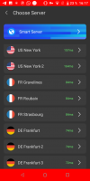 The main page of the program provides connection to the VPN service. Then the time of using it will appear on the screen. The selection of the server is performed in a special window. For each option, the delay time is indicated. Servers from more than 10 states are available, among them France, USA, Germany. There are no restrictions on the use of virtual private networks through this utility. There are no limits on the volume of traffic and time.Security
