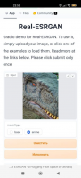 ESRGAN is a mobile Android program that opens access to artificial intelligence functionality. With its help, you can edit existing images. It is possible to increase the quality of photos, remove noise, add a variety of effects and much more.