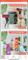 Thanks to the cooperation between the two retail chains, users have access to an extensive product catalog. The entire assortment is sorted into four thematic categories: home care, cosmetics, hosiery and hygiene products. Users can buy the products they need and participate in time-limited offers. For each purchase the user receives bonus points on his card. They can be spent on the next purchases. The whole catalog of the mobile program is stylized like a paper magazine. This is achieved due to the fact that the utility presents digital copies of pages from regularly published physical catalogs.Features