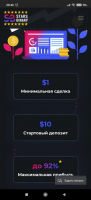 As already mentioned, the application allows users to trade on the Stars Binary brokerage platform. It is important to add, it also includes 27 currency pairs, 4 cryptocurrency pairs. As for the minimum deposit, you should take into account in advance, it is - 10 dollars, so that you do not encounter unpleasant situations. In addition, here we can not fail to mention the original button called "Overlap". It is characterized by the fact that it allows you to create an increase in the previous investment in several times. In addition, the user will be able to open a trade transaction, doing so in the same direction.Finance