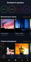 The utility has an extensive catalog of songs. The user can choose any of the available tracks and practice playing them. All musical works are divided into four difficulty categories: beginner, intermediate, advanced and pro. It should be noted that in the free version only a part of the content from the music library is available.Premium
