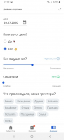 In the tab called "Diary", it is necessary to constantly mark the days of the calendar, in which there was alcohol consumption or a desire to drink. To do this, click the "Add" button and fill in the following information:- the sensations experienced after drinking alcohol;