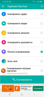 After launching the utility, there is an option to specify the type of files to be searched for. You can separately scan videos, documents, audio and so on. Scanning time depends on the parameters of the mobile device and the number of files.Duplicates