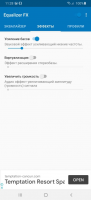 There is a function of forced amplification of low frequencies. This allows you to emphasize the bass on the general background, making the sound more saturated. This is especially relevant for mobile devices, since the small internal speakers are not able to qualitatively output sounds in the lower frequency range. A volume booster is provided, which allows you to "pull up" audio that initially sounds quiet even at maximum volume. The virtualization function allows you to activate the stereo effect. It is possible to change the design theme. In the settings, you can activate the automatic detection of the equalizer when you launch a third-party player.Features