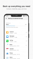 You can use both local directories and cloud platforms as storage locations. In the latter case, you need to synchronize the cloud with your personal account beforehand. To start a backup, just launch the application, select the required data set in the list and specify the backup method. When saving locally, the utility automatically determines the size of the area allocated for long-term data storage. An advanced mode is implemented, which performs a deep scan to detect all information that can be duplicated elsewhere. Note that the application works correctly only on the EMUI platform version 4.0 and above. On many devices at the installation stage, the usual shortcut of the program is not created - all operations are carried out through the settings menu.Features