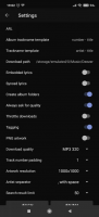Going to the settings of the mobile utility, the user will be able to change some options at will. You can independently specify the folder in which the music songs loaded into memory will be stored. It is also possible to choose the order of displaying songs. The utility provides the ability to download tracks with their lyrics. The user can also activate the option responsible for creating a new folder for each music album.Features