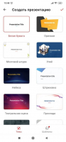 The mobile program contains a huge number of various tools. With their help, the user can create an interesting and beautiful presentation. The developers of the utility have prepared a number of ready-made templates and themes for users, the use of which speeds up the process of creating a project. The user can work on the project alone or invite other people to jointly create an electronic presentation. To do this, all participants must have a stable network connection. All changes made by users in the collaborative mode are instantly synchronized between devices. At the same time, users can leave comments for each other, with the help of which they can communicate while working on the presentation. This utility provides two ways to save a document. The first involves sending the presentation file to cloud storage. The second way allows you to save the result in the memory of a portable gadget. The final document is in the PPTX format. If desired, you can convert it to PDF or transfer it to the PowerPoint editor.Editor