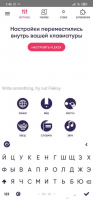 The app is a bilingual keyboard, and to switch between languages you just swipe the spacebar. Fleksy supports over 50 languages and includes letter keys, numbers, punctuation marks, GIFs, emoticons and stickers, giving variety to your communication. Fleksynext's smart assistant is also built inside the app. This artificial intelligence is able to automatically select appropriate emoji and stickers that match the topic of your communication. You have access to automatic word replacement and memorization of new terms. There is a prompt bar and predictive input capability. Users can also add new words to the keyboard dictionary so that they are not automatically corrected.Settings