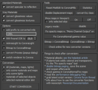 The Corona Converter program will act as a file converter. With the help of this utility you can transform the light source itself, as well as maps, as well as other objects made in V-Ray.