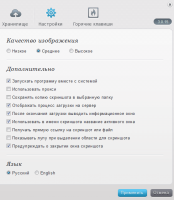 On the main page of the computer utility the user can customize some parameters. To do this, it is enough to put a check mark in front of the required settings item. For example, a person can activate the utility at computer startup. It is also possible to select the quality of the future screenshot. There are three options: high, medium and low. It is worth noting that along with increasing the quality level, the image size increases.Features