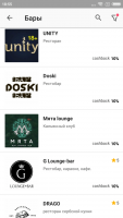 To start using the application, you need to register using your phone number. Then everything is very simple: you visit an establishment that is part of the partner network, pay with a virtual card and get your cashback in the form of bonus points. You don't have to move hundreds of cards in search of the right one, let alone worry about forgetting your card at home or losing it altogether, everything is at your fingertips. Non-registered users can familiarize themselves with promotions and partners. Thanks to this you will be able to evaluate the necessity of registration. For the user's comfort, all partner organizations are divided into categories. In the tab "Places" you will see the whole list of establishments and stores working under the bonus program. The tab "Discounts" contains all the current offers. In the tab with promo codes you will be offered pleasant additions to your discount, and in promotions - an opportunity to use a service or buy goods at a reduced price.Advantages
