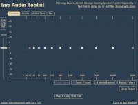 Ears Audio Toolkit application is implemented as a standard plug-in for the browser and is a convenient equalizer. All necessary functions for sound customization are available.