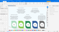 At the initial stage the user can use the built-in catalog to select the most suitable template. The catalog contains a large number of elements of different types, which makes the work much easier. It is possible to draw classical graphs, network structure, describe algorithms, mental maps, building plans. There is also a module for designing the interface of mobile applications.Editor