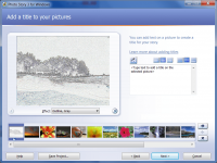 Photo Story is a Windows application for creating a slideshow from a set of photos. You can add comments, sound and effects from the built-in catalog. The standard video format is used to save the final file, and there is an option to save the project as a draft to continue later.