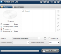 Astroburn Lite application is designed to work with optical disks. You can create full copies or write data to the drives. All necessary settings are available, including changing the write speed.