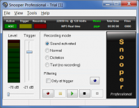 Snooper is a software developed for Windows devices. The functionality present in the utility allows users to record sounds using a microphone connected to a PC or laptop. The possibility of hidden work is implemented, which allows you to hide the recording process from a person. It is possible to make a recording schedule. The program has no localization in Russian.