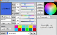 ColorMania is a utility that helps users make color palette adjustments on all modern Windows systems. It contains basic tools that detect colors on a wide variety of objects. If necessary, you can choose a pipette for detailed analysis or a magnifying glass to identify the color on the template. To perform a hue recognition, a person must simply point the selected tool at the object.