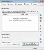 Playlist Creator application allows you to create and edit playlists of popular formats. The resulting files are supported by all common players.